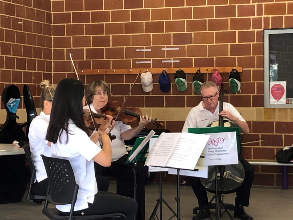 During Week 2, Kenwick School was lucky enough to be involved in the Harmony Schools Program which was sponsored by Mitsubishi. This program provided four members of the Western Australian Symphony Orchestra to come to our school and perform a range of music, allowing our students to see a live performance by a chamber group in a more familiar setting. The performers played a range of traditional and contemporary music that had the students full attention for the entire 60 minute show. It was amazing to see the students so calm and relaxed during the event, with everyone loving the different solos and emotions that the performers portrayed with their instruments. The look of genuine joy on each and every students face showed that this was a wonderful event for our school and one that we hope to repeat in the future.